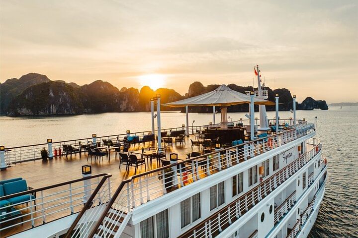 A serene Lan Ha Bay itinerary, 25 km away from Halong Bay, sets Ambassador Signature apart from its sister cruises. It explores pristine locations like Viet Hai Fishing Village and Dark-Light Cave, offering activities like fish lake visits, bee houses, ancient houses, fish foot massages, kayaking, and local rowing boat rides. If these excursions aren't your preference, you can opt for a massage while enjoying the bay's beauty from the sundeck or your private balcony.