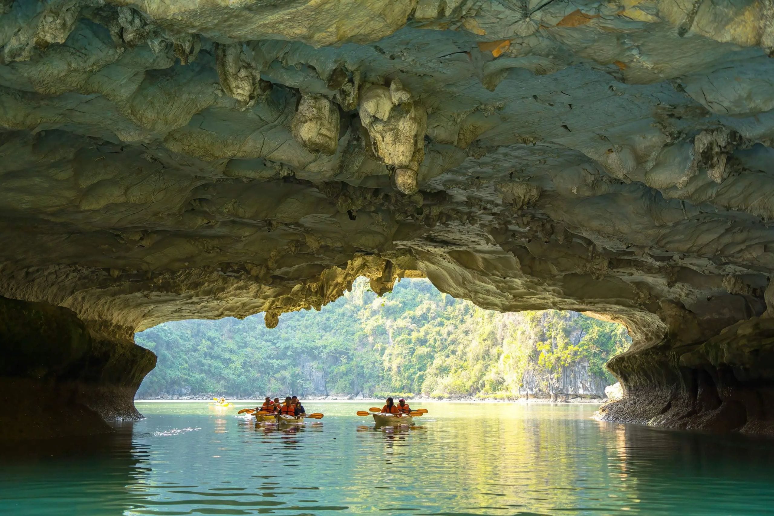 This luxury cruise explores stunning Halong/Lan Ha Bays, offering top-notch amenities, an opulent Skybar, and varied lodging.
