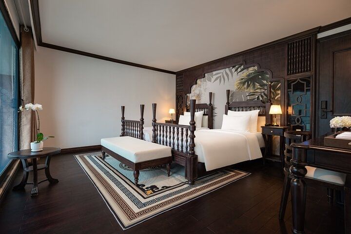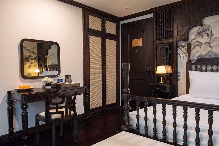 Embark on a journey through the magnificent limestone mountains with Our Cruise. The itinerary includes stops at untouched natural sites and beaches, only accessible by small boats. Kayak through caves and tunnels, swim in the cool blue waters, and indulge in fresh local seafood. As night falls, guests can relax under the starlit sky on the sundeck or socialize over cocktails. The following day promises an even more extraordinary experience, waking up to the beautiful Lan Ha Bay sunrise and exploring the pristine Cat Ba Island. To embark on this unique voyage through Lan Ha Bay, join Our Cruise, where intricate patterns and designs reminiscent of ancient Indochina will transport you back to a vibrant historical era. Every exquisite detail will immerse you in the romantic beauty of Lan Ha Bay, where exceptional cuisine will tantalize your senses and create unforgettable memories.