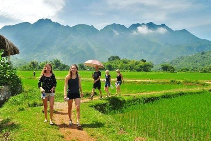 The 2-day Mai Chau tour offers a refreshing escape from Hanoi, taking visitors through scenic landscapes to the tranquil countryside of northern Vietnam. Upon arrival, guests are welcomed into a traditional stilt house, experience local hospitality, and enjoy a leisurely bike ride through picturesque rice paddies and villages. The tour includes a visit to a local market for handmade crafts, a delicious regional lunch, and a short trek to explore more of the beautiful surroundings. The day concludes with a relaxing drive back to Hanoi, making it a perfect brief yet enriching cultural adventure.